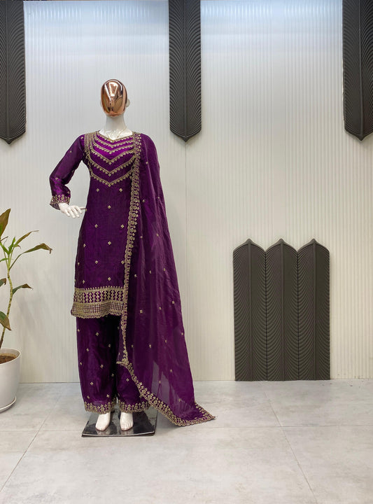 PRINTED A-LINE KURTA - PLAZZO WITH DUPATTA