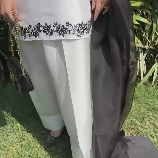 DESIGNER WEAR EXCLUSIVE FARSI SALWAR SUIT ROMAN SILK FABRIC TOP AND PANT WITH ORGANZA DUPATTA*