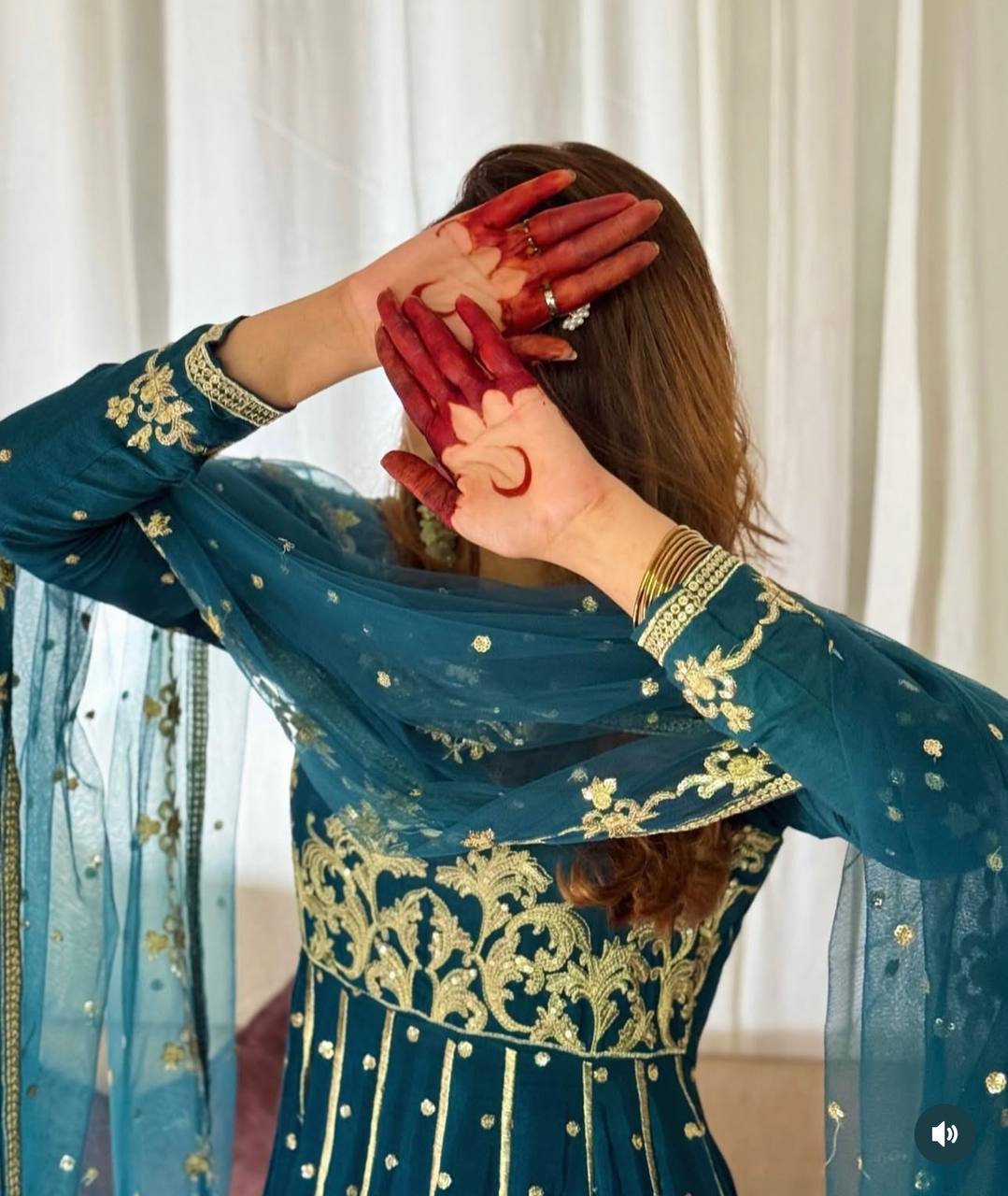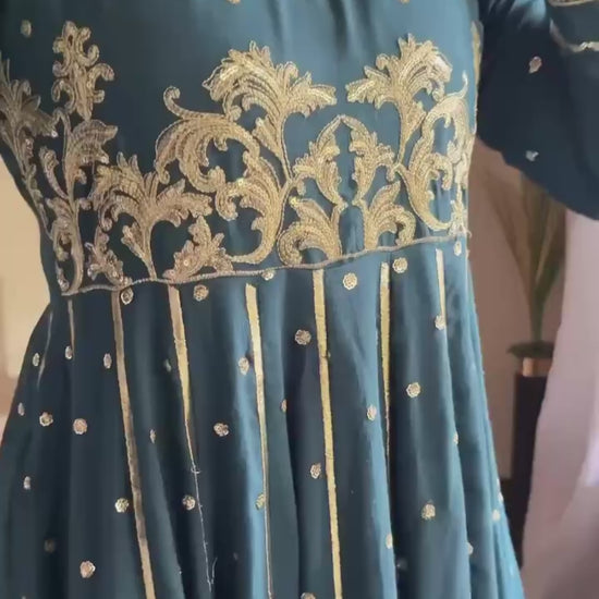 *Gwon Fabric* Β : Pure Fox Georgette With Heavy Embroidery 5mm Sequence Work With Full-Sleeve With Latkan Dori